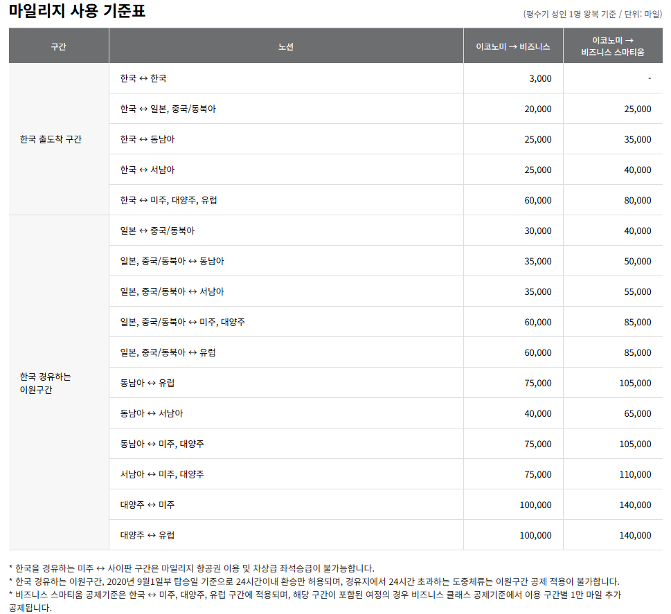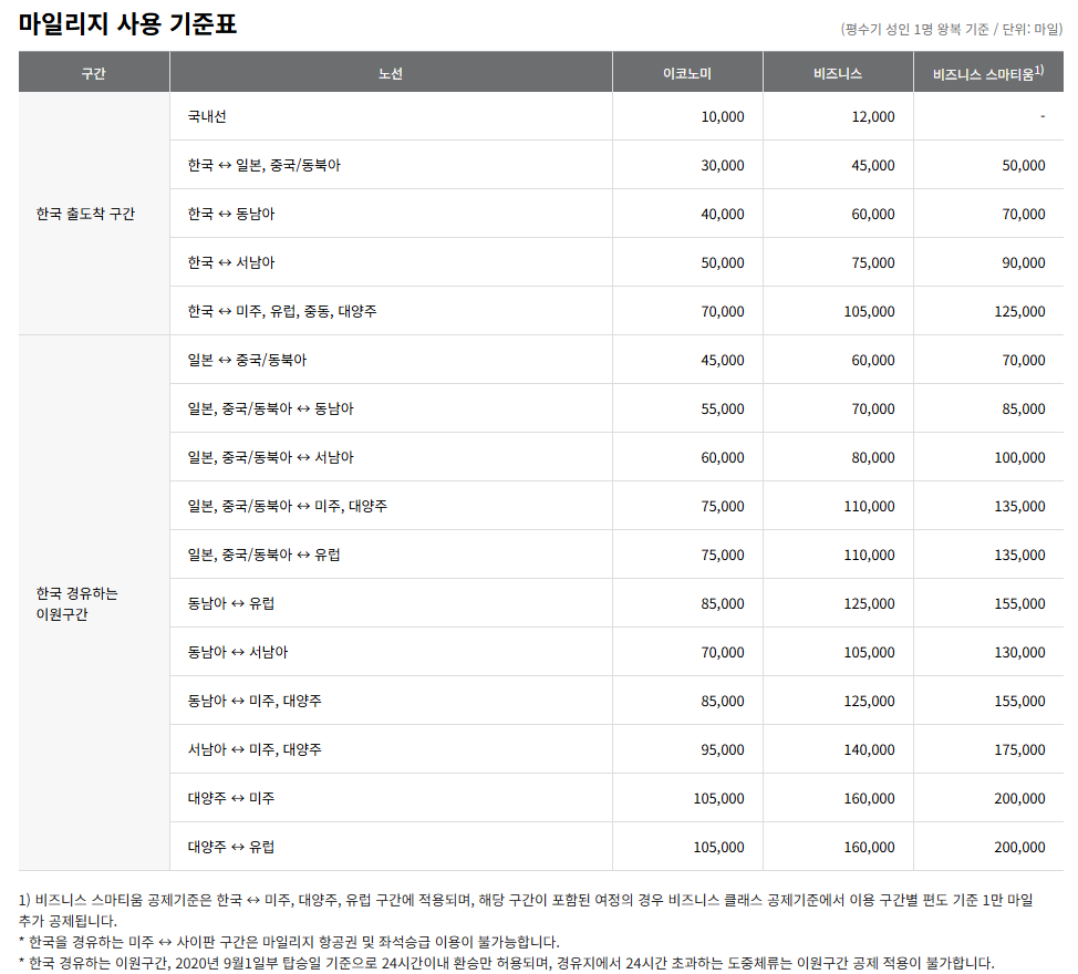 - 마일리지 필요량 확인: 목적지와 날짜에 따라 필요한 마일리지를 확인하세요.