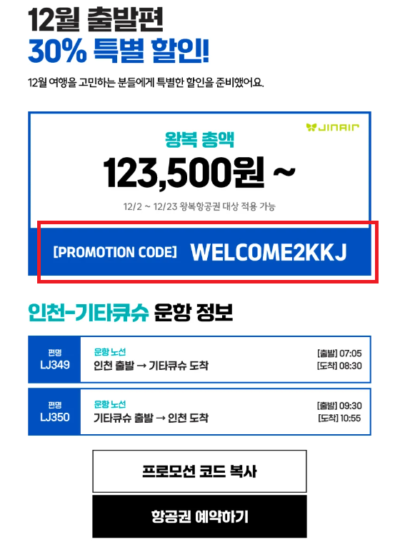 - 기타큐슈 여행 진에어 프로모션 코드 : WELCOME2KKJ